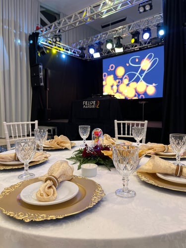 Nosso espaço amplo e sofisticado conta com palco completo, som e iluminação profissionais, duas cozinhas totalmente equipadas e mobiliário de alto padrão. Com copa de apoio, estacionamento amplo e gerador de energia, cada detalhe é pensado para garantir conforto, segurança e o sucesso do seu evento.
