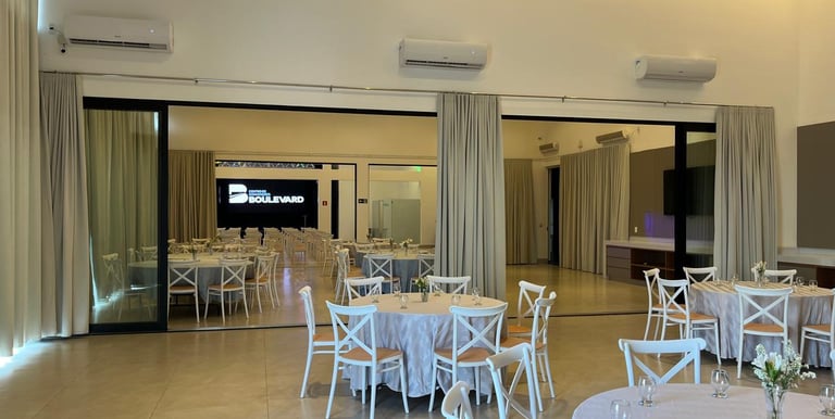 Três salões totalmente climatizados, que podem ser usados separadamente ou integrados, oferecendo máxima flexibilidade para qualquer tipo de evento.